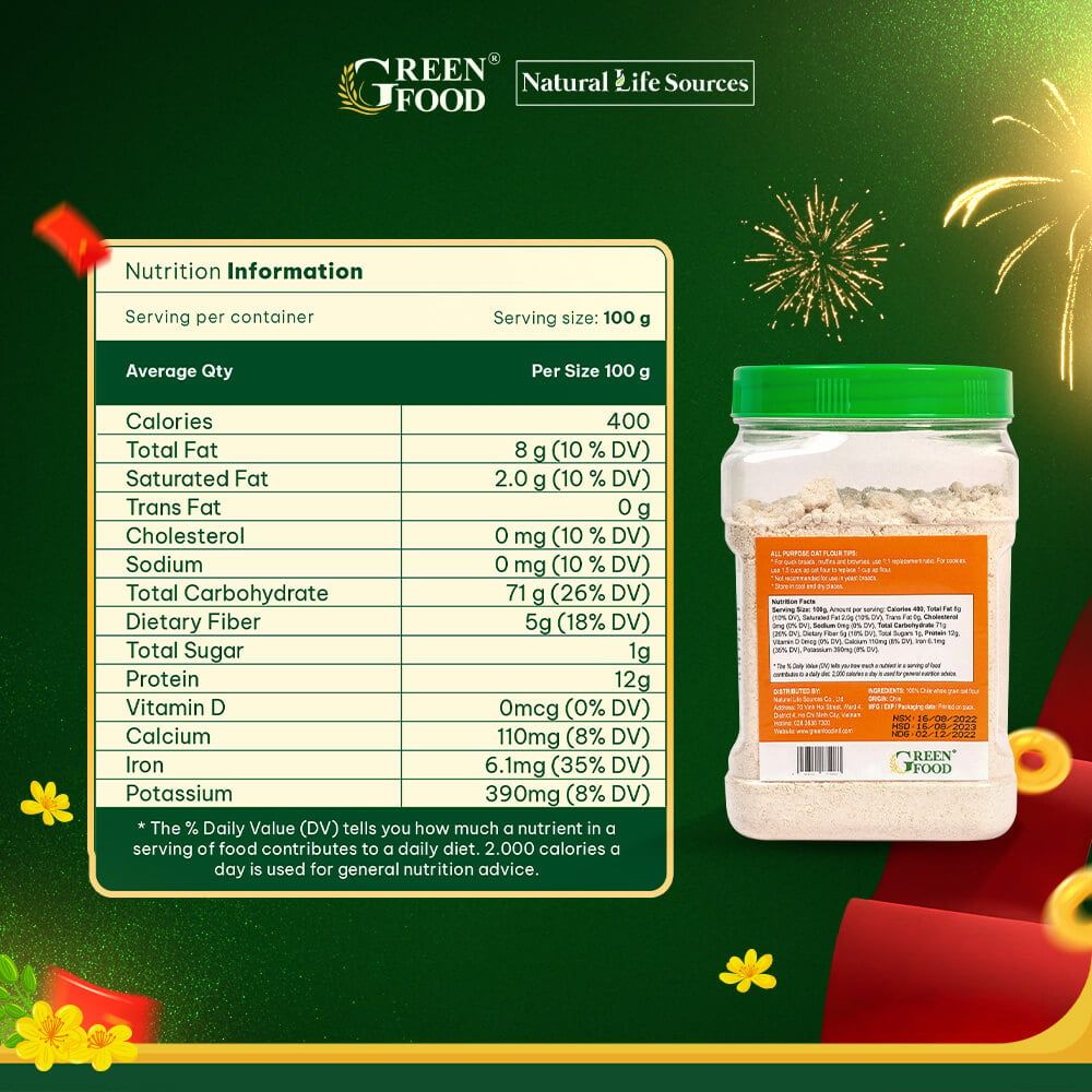 Giá trị dinh dưỡng của bột yến mạch nguyên chất ăn liền Just Oats