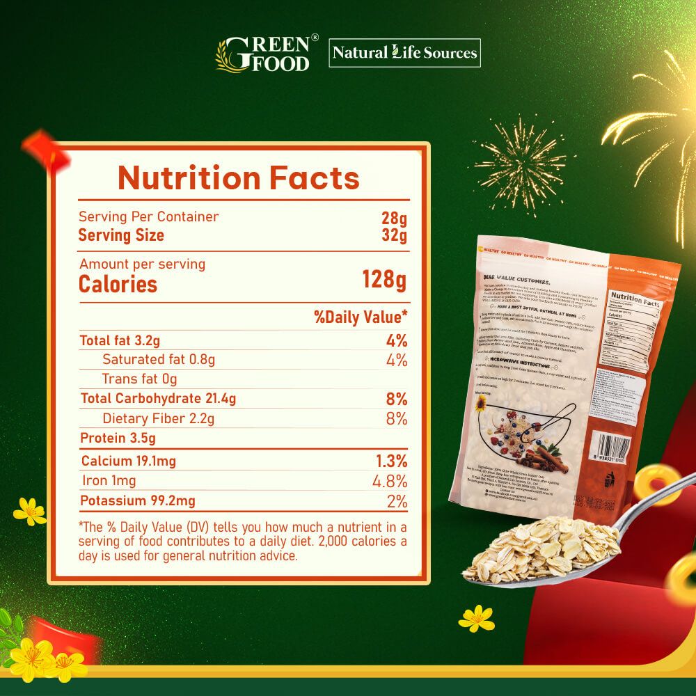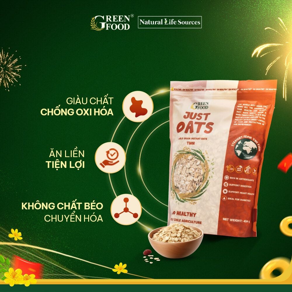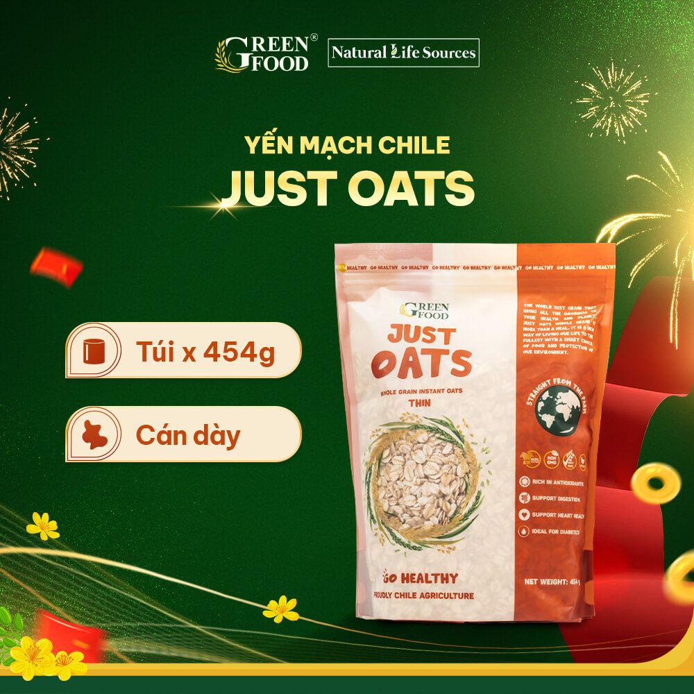 Yến mạch cán dày Just Oats – lựa chọn lý tưởng cho người bận rộn, đang ăn kiêng hoặc theo đuổi lối sống lành mạnh. Sản phẩm thuộc nhãn hiệu Green Food – nhập khẩu trực tiếp từ Chile.