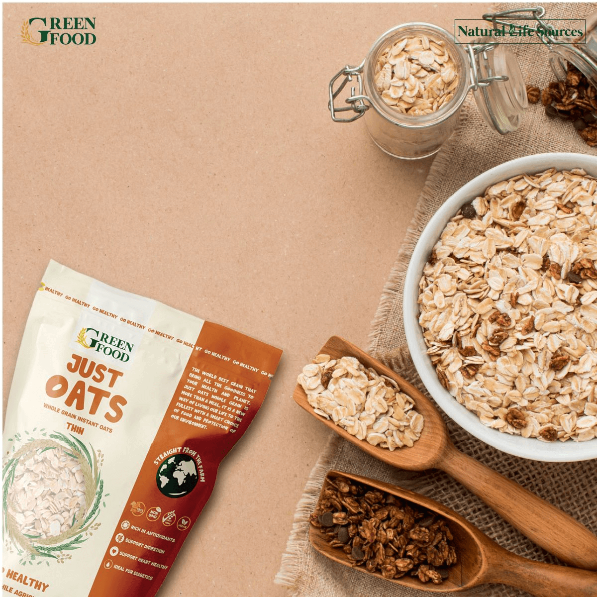 Yến mạch cán mỏng Just Oats – lựa chọn lý tưởng cho người bận rộn, đang ăn kiêng hoặc cần bổ sung ngũ cốc tự nhiên mỗi ngày. Sản phẩm thuộc nhãn hiệu Green Food – nhập khẩu trực tiếp từ Chile.